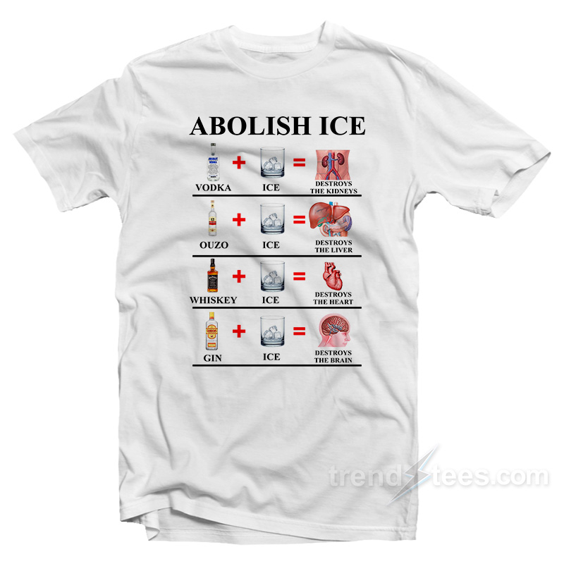 Abolish Ice Vodka Ice Destroy The Kidneys T-Shirt For Sale Size S, M, L, XL,2XL,3XL 100% combed ring-spun cotton UNISEX T-shirt