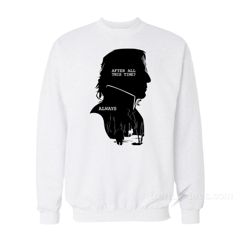Welcome to our trendy clothing stores Trends tees sweatshirts categories, we produce Alan Rickman After All This Time Always Sweatshirt For Women’s or Men’s Trendy Clothing, We print according to your order with the latest trendy designs using super sophisticated machines. This ensures high-quality, customized apparel tailored to your preferences.