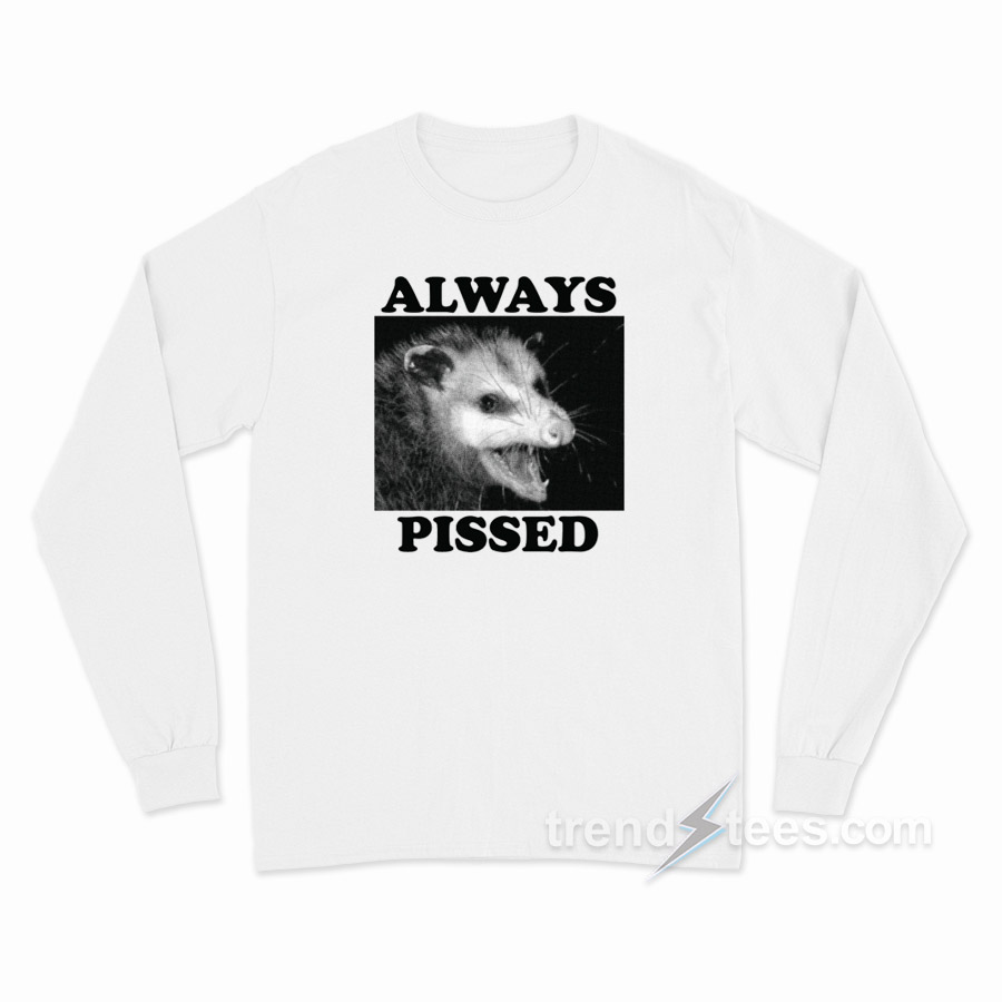 Product Trendstees Everything is hand printing by our team at our warehouse using Eco-friendly inks and suppliers. All designs Always Pissed Possum Long Sleeve Shirt The ink is pressed into the fabric permanently and healed at high temperatures. It makes the image will not fade, crack, or wipe. This long sleeve t-shirt can be the best gift for your loved one.