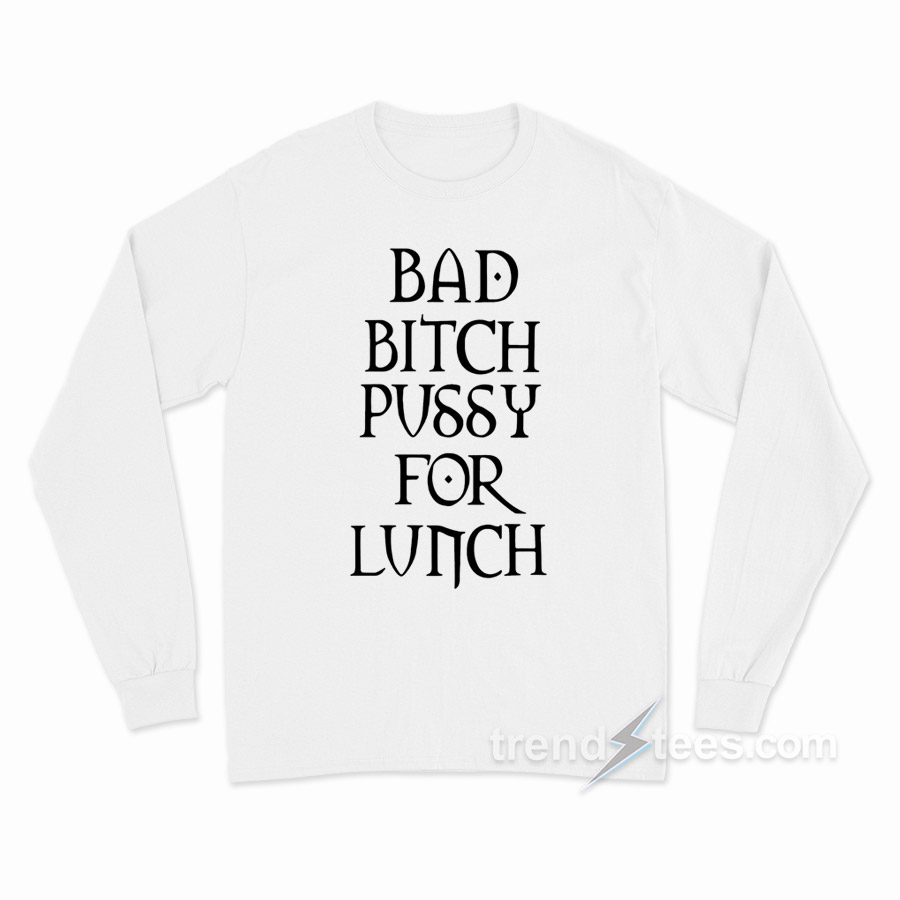 Product Trendstees Everything is hand printing by our team at our warehouse using Eco-friendly inks and suppliers. All designs Bad Bitch Pussy For Lunch Long Sleeve Shirt The ink is pressed into the fabric permanently and healed at high temperatures. It makes the image will not fade, crack, or wipe. This long sleeve t-shirt can be the best gift for your loved one.