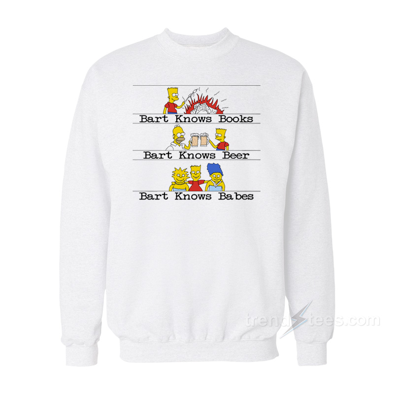 Bart Knows Books Bart Knows Beer Bart Knows Babes Sweatshirt For Women’s or Men’s