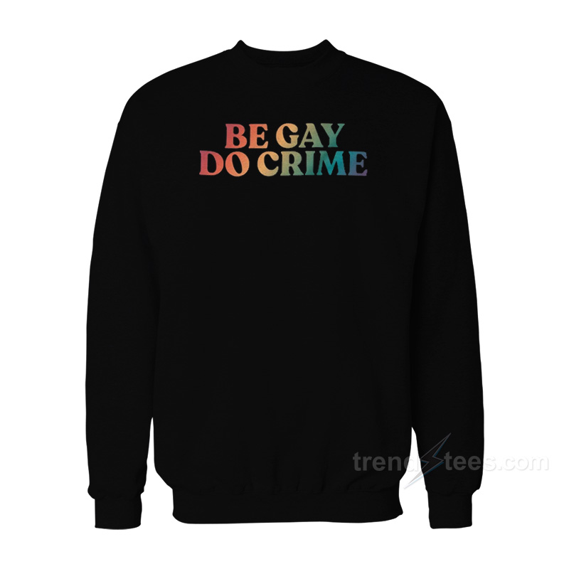 Product Trends tees Everything is hand printing by me at my house using Eco-friendly inks and supplier. All designs Be Gay Do Crime Sweatshirt For Women’s or Men’s are screen printing by hand and are high-quality prints. The ink is pressed into the fabric permanently and healed at high temperatures so the image will not fade, crack, or wipe from Unisex’s coated, sweatshirt, very soft, warm and comfortable screen is perfect for you