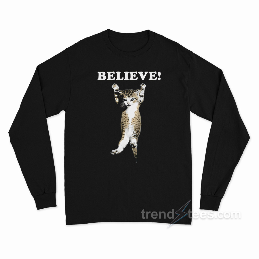 Believe Cat Poster Long Sleeve Shirt Trendy Clothing Store
