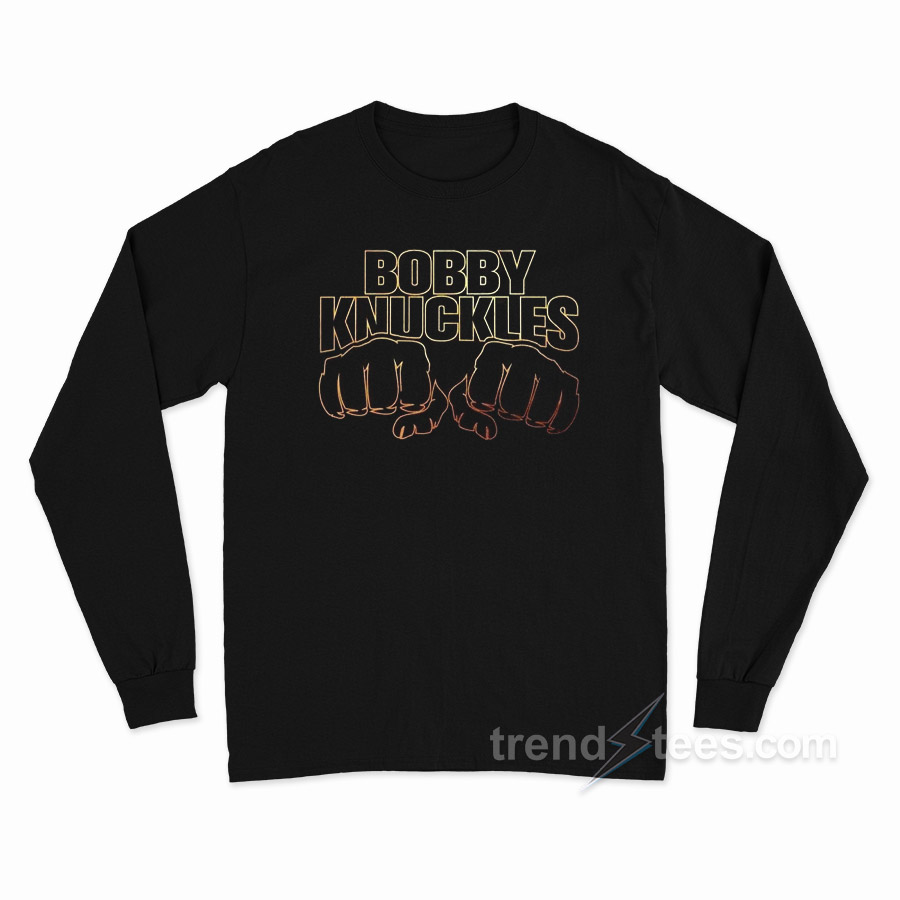 Product Trendstees Everything is hand printing by our team at our warehouse using Eco-friendly inks and suppliers. All designs Bobby Knuckles Long Sleeve Shirt The ink is pressed into the fabric permanently and healed at high temperatures. It makes the image will not fade, crack, or wipe. This long sleeve t-shirt can be the best gift for your loved one.