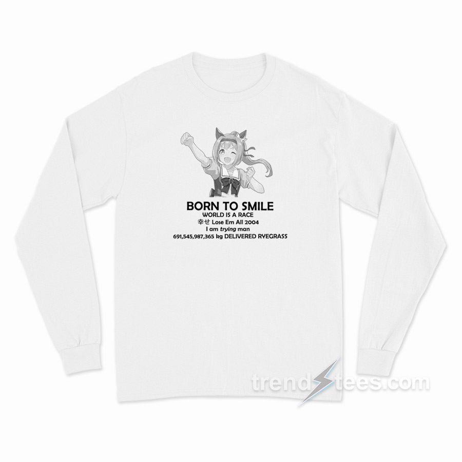 Here we go Trendy Clothing Stores! Find the perfect and also most suitable style custom t-shirt for your daily fashion at Trendstees All designs Born To Smile World Is A Race Long Sleeve Shirt The ink is pressed into the fabric permanently and healed at high temperatures. It makes the image will not fade, crack, or wipe. This long sleeve t-shirt can be the best gift for your loved one.