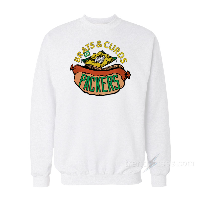 Product Trends tees Everything is hand printing by me at my house using Eco-friendly inks and supplier. All designs Brats and Curds Packers Sweatshirt For Women’s or Men’s are screen printing by hand and are high-quality prints. The ink is pressed into the fabric permanently and healed at high temperatures so the image will not fade, crack, or wipe from Unisex’s coated, sweatshirt, very soft, warm and comfortable screen is perfect for you