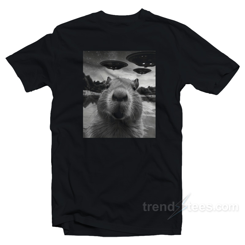 Capybara Selfie with UFOs Weird T-Shirt For Sale Size S, M, L, XL, 2XL, 3XL