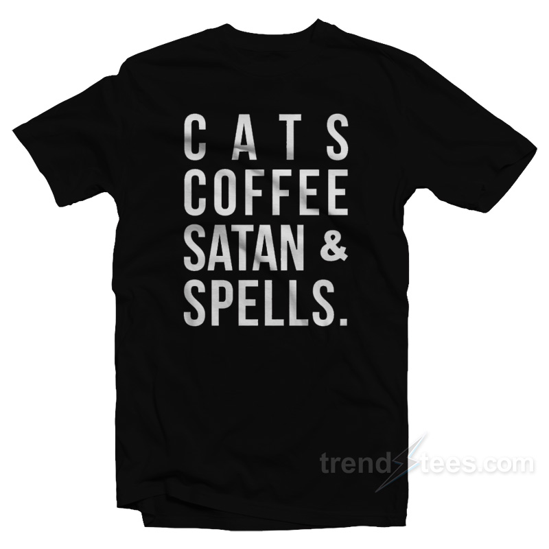 Cats Coffee Satan And Spells T-Shirt For Sale Size S, M, L, XL, 2XL, 3XL