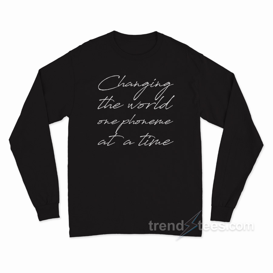Product Trendstees Everything is hand printing by our team at our warehouse using Eco-friendly inks and suppliers. All designs Changing The World One Phoneme at A Time Long Sleeve Shirt The ink is pressed into the fabric permanently and healed at high temperatures. It makes the image will not fade, crack, or wipe. This long sleeve t-shirt can be the best gift for your loved one.