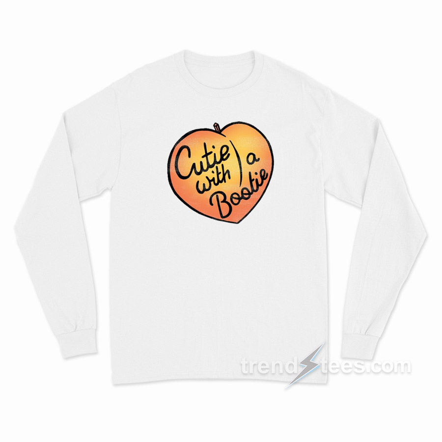 Product Trendstees Everything is hand printing by our team at our warehouse using Eco-friendly inks and suppliers. All designs Cutie With A Bootie Long Sleeve Shirt The ink is pressed into the fabric permanently and healed at high temperatures. It makes the image will not fade, crack, or wipe. This long sleeve t-shirt can be the best gift for your loved one.