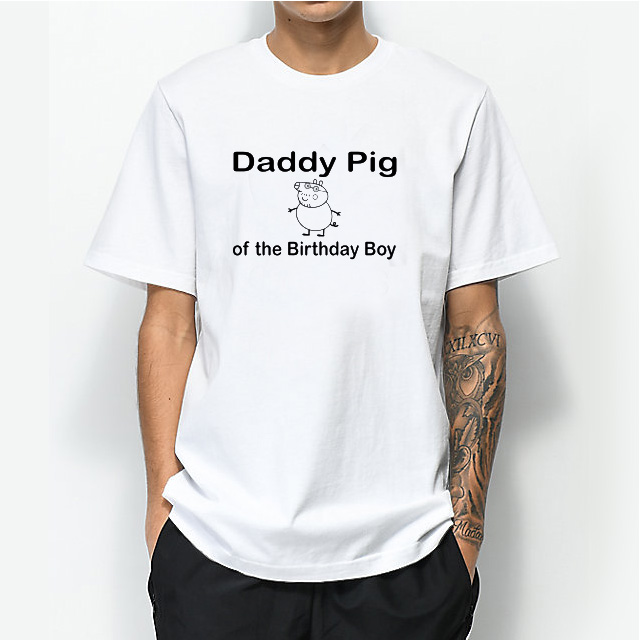 Daddy Pig of the Birthday Boy T-Shirt Size S, M, L, XL,2XL,3XL 100% combed ring-spun cotton Unisex T-shirt