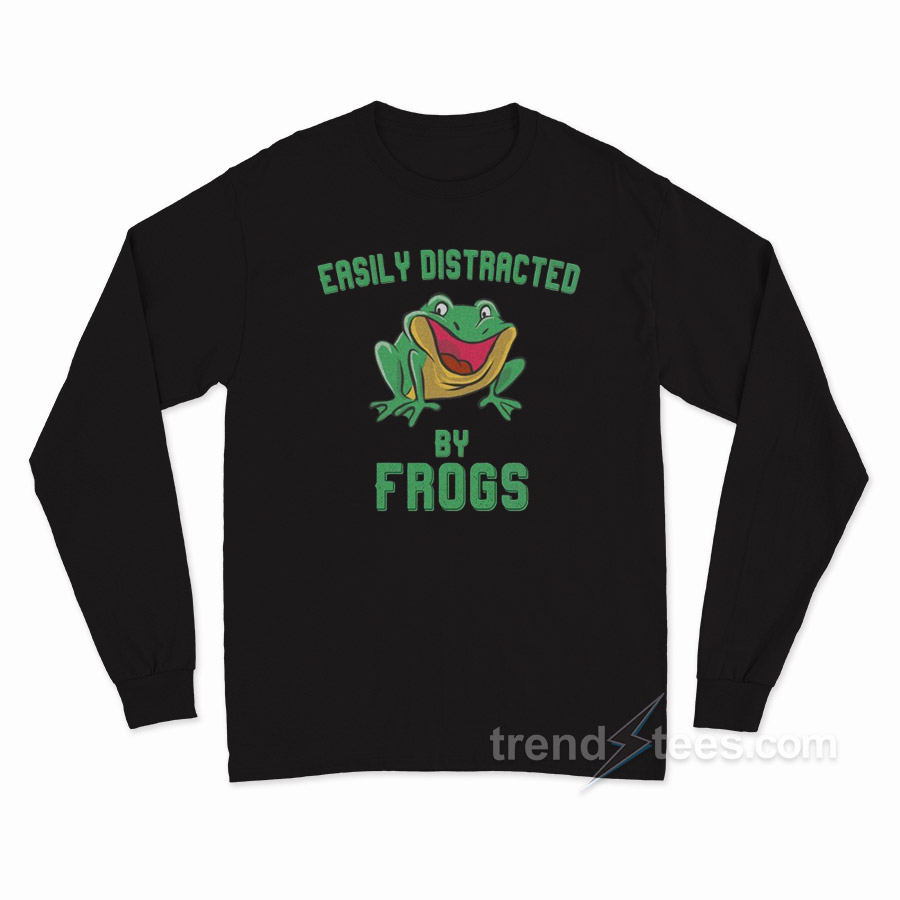 Product Trendstees Everything is hand printing by our team at our warehouse using Eco-friendly inks and suppliers. All designs Easily Distracted By Frogs Long Sleeve Shirt The ink is pressed into the fabric permanently and healed at high temperatures. It makes the image will not fade, crack, or wipe. This long sleeve t-shirt can be the best gift for your loved one.