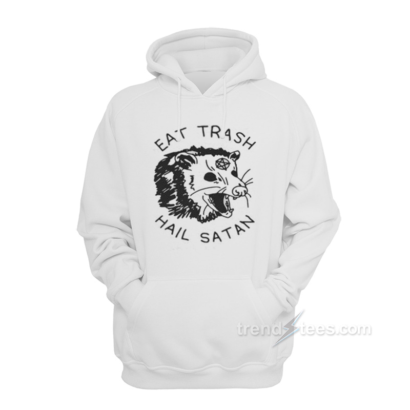 Welcome to Our Hoodies Categories, we produce Eat Trash Hail Satan Hoodie For Women’s Or Men’s The design is printed locally with eco-friendly water-based inks using a digital printing method that guarantees a long-lasting and durable print