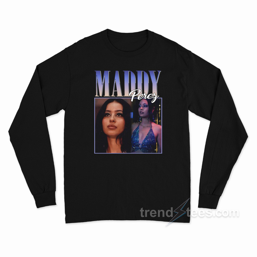 Product Trendstees Everything is hand printing by our team at our warehouse using Eco-friendly inks and suppliers. All designs Euphoria Maddy Perez Long Sleeve Shirt The ink is pressed into the fabric permanently and healed at high temperatures. It makes the image will not fade, crack, or wipe. This long sleeve t-shirt can be the best gift for your loved one.