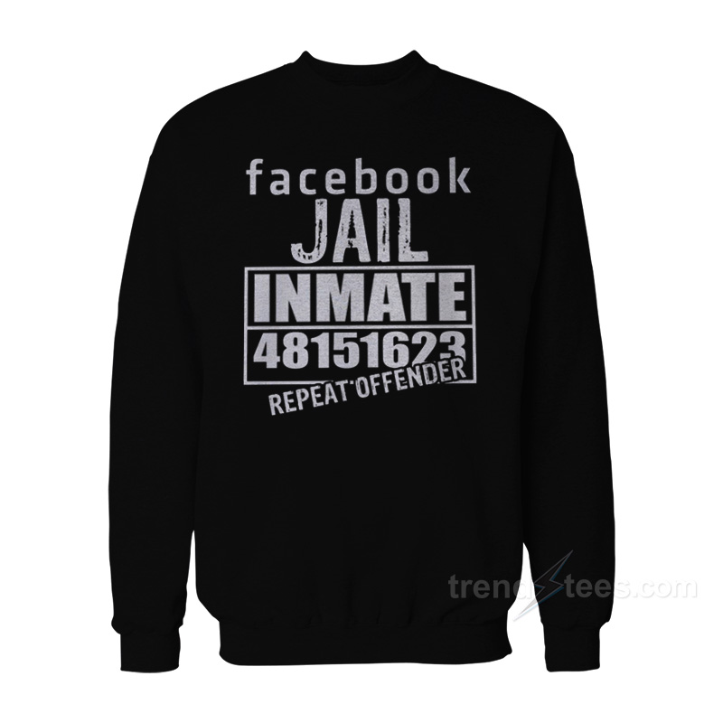 Product Trends tees Everything is hand printing by me at my house using Eco-friendly inks and supplier. All designs Facebook Jail Inmate Repeat Offender Sweatshirt For Women’s or Men’s are screen printing by hand and are high-quality prints. The ink is pressed into the fabric permanently and healed at high temperatures so the image will not fade, crack, or wipe from Unisex’s coated, sweatshirt, very soft, warm and comfortable screen is perfect for you