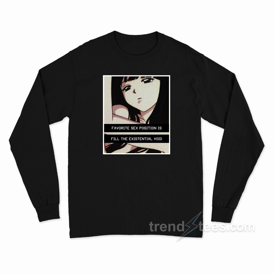 Product Trendstees Everything is hand printing by our team at our warehouse using Eco-friendly inks and suppliers. All designs Favorite Sex Position Is Fill The Existential Void Long Sleeve Shirt The ink is pressed into the fabric permanently and healed at high temperatures. It makes the image will not fade, crack, or wipe. This long sleeve t-shirt can be the best gift for your loved one.