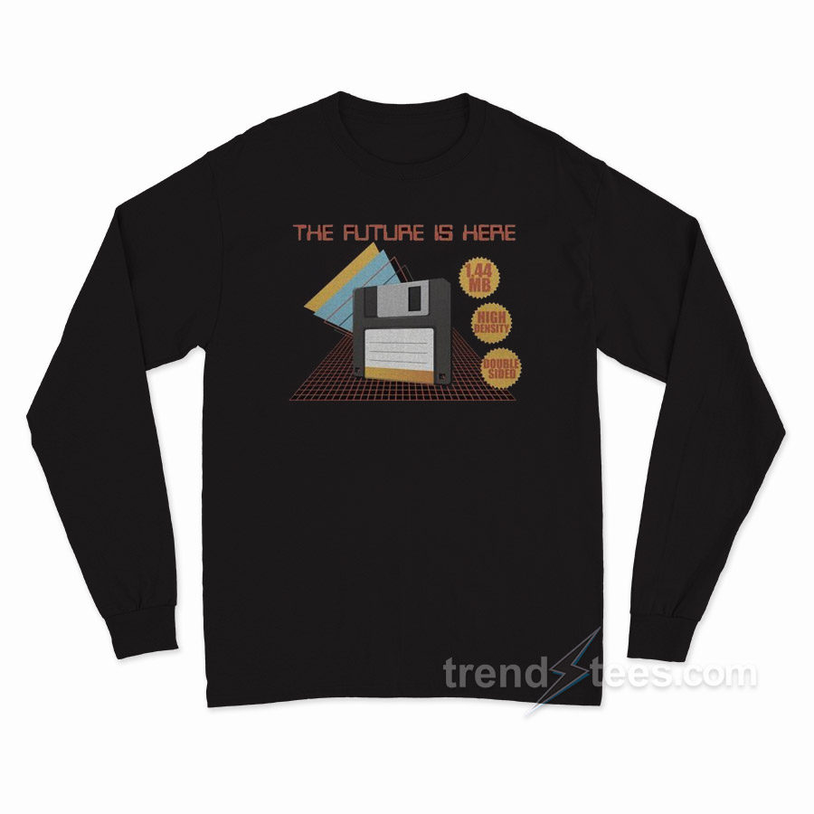 Product Trendstees Everything is hand printing by our team at our warehouse using Eco-friendly inks and suppliers. All designs Floppy Disc The Future Is Here Long Sleeve Shirt The ink is pressed into the fabric permanently and healed at high temperatures. It makes the image will not fade, crack, or wipe. This long sleeve t-shirt can be the best gift for your loved one.