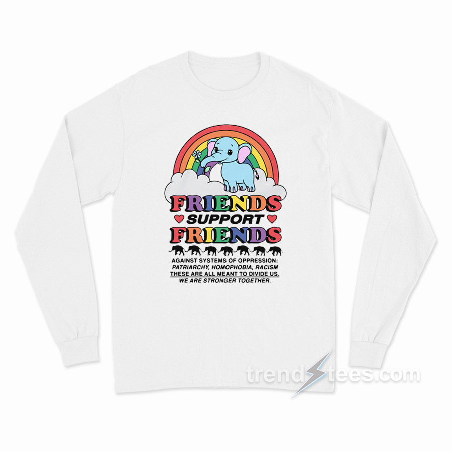 Product Trendstees Everything is hand printing by our team at our warehouse using Eco-friendly inks and suppliers. All designs Friends Support Friends Long Sleeve Shirt The ink is pressed into the fabric permanently and healed at high temperatures. It makes the image will not fade, crack, or wipe. This long sleeve t-shirt can be the best gift for your loved one.