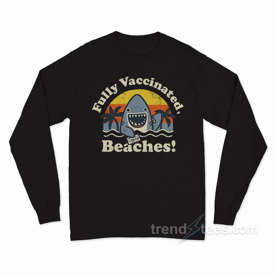 Product Trendstees Everything is hand printing by our team at our warehouse using Eco-friendly inks and suppliers. All designs Fully Vaccinated Beaches Long Sleeve Shirt The ink is pressed into the fabric permanently and healed at high temperatures. It makes the image will not fade, crack, or wipe. This long sleeve t-shirt can be the best gift for your loved one.