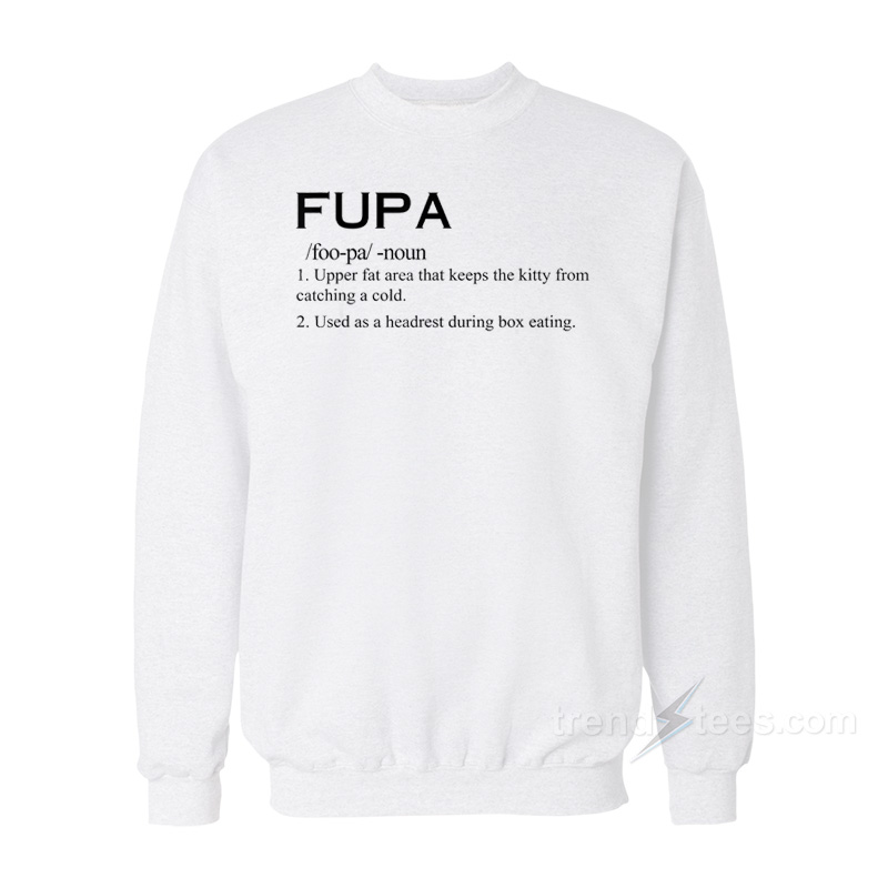 Product Trends tees Everything is hand printing by me at my house using Eco-friendly inks and supplier. All designs Fupa Definition Sweatshirt For Women’s or Men’s are screen printing by hand and are high-quality prints. The ink is pressed into the fabric permanently and healed at high temperatures so the image will not fade, crack, or wipe from Unisex’s coated, sweatshirt, very soft, warm and comfortable screen is perfect for you