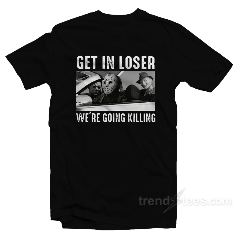 Get In Loser We’re Going Killing Horror T-Shirt For Sale Size S, M, L, XL, 2XL, 3XL