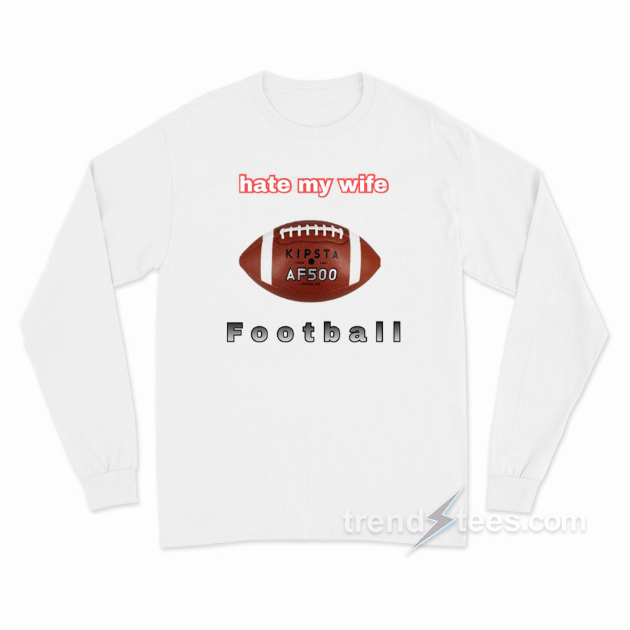 Product Trendstees Everything is hand printing by our team at our warehouse using Eco-friendly inks and suppliers. All designs I Hate My Wife Football Long Sleeve Shirt The ink is pressed into the fabric permanently and healed at high temperatures. It makes the image will not fade, crack, or wipe. This long sleeve t-shirt can be the best gift for your loved one.