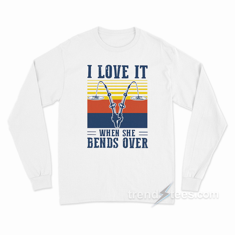 Product Trendstees Everything is hand printing by our team at our warehouse using Eco-friendly inks and suppliers. All designs I Love It When She Bends Over Fishing Long Sleeve Shirt The ink is pressed into the fabric permanently and healed at high temperatures. It makes the image will not fade, crack, or wipe. This long sleeve t-shirt can be the best gift for your loved one.