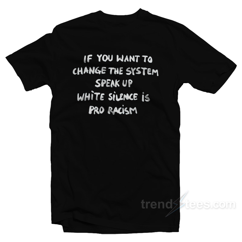 If You Want To Change The System Speak Up White Silence Is Pro Racism T-Shirt For Sale Size S, M, L, XL, 2XL, 3XL