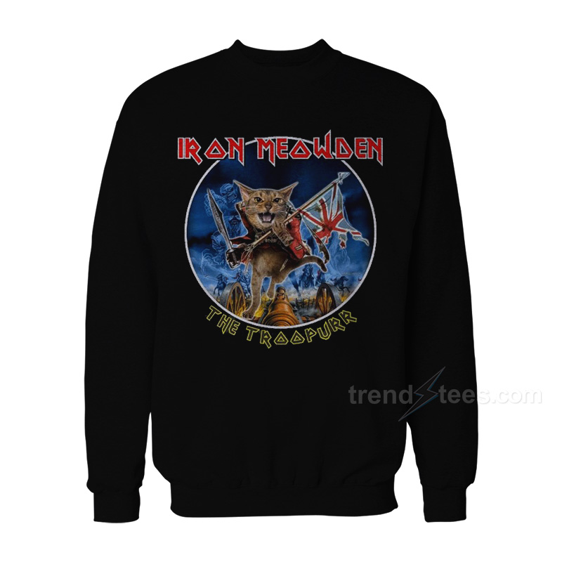 Product Trends tees Everything is hand printing by me at my house using Eco-friendly inks and supplier. All designs Iron Meowden The Troopurr Sweatshirt For Women’s or Men’s Trendy Clothes are screen printing by hand and are high-quality prints. The ink is pressed into the fabric permanently and healed at high temperatures so the image will not fade, crack, or wipe from Unisex’s coated, sweatshirt, very soft, warm and comfortable screen is perfect for you