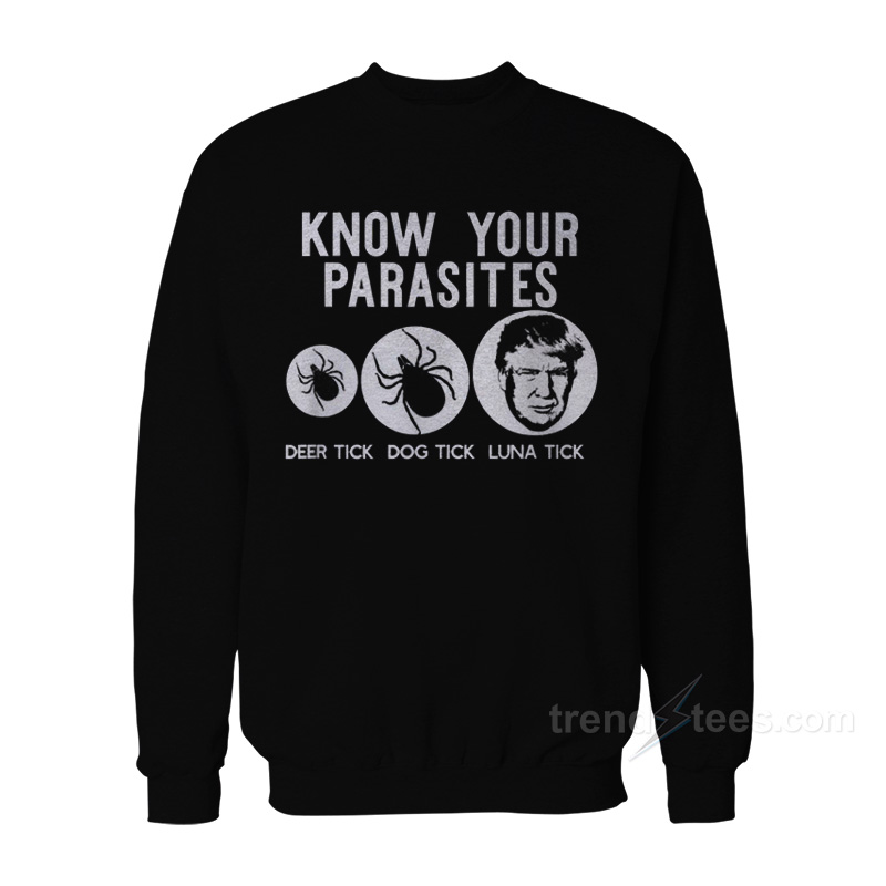 Product Trends tees Everything is hand printing by me at my house using Eco-friendly inks and supplier. All designs Know Your Parasites Trump Sweatshirt For Women’s or Men’s are screen printing by hand and are high-quality prints. The ink is pressed into the fabric permanently and healed at high temperatures so the image will not fade, crack, or wipe from Unisex’s coated, sweatshirt, very soft, warm and comfortable screen is perfect for you