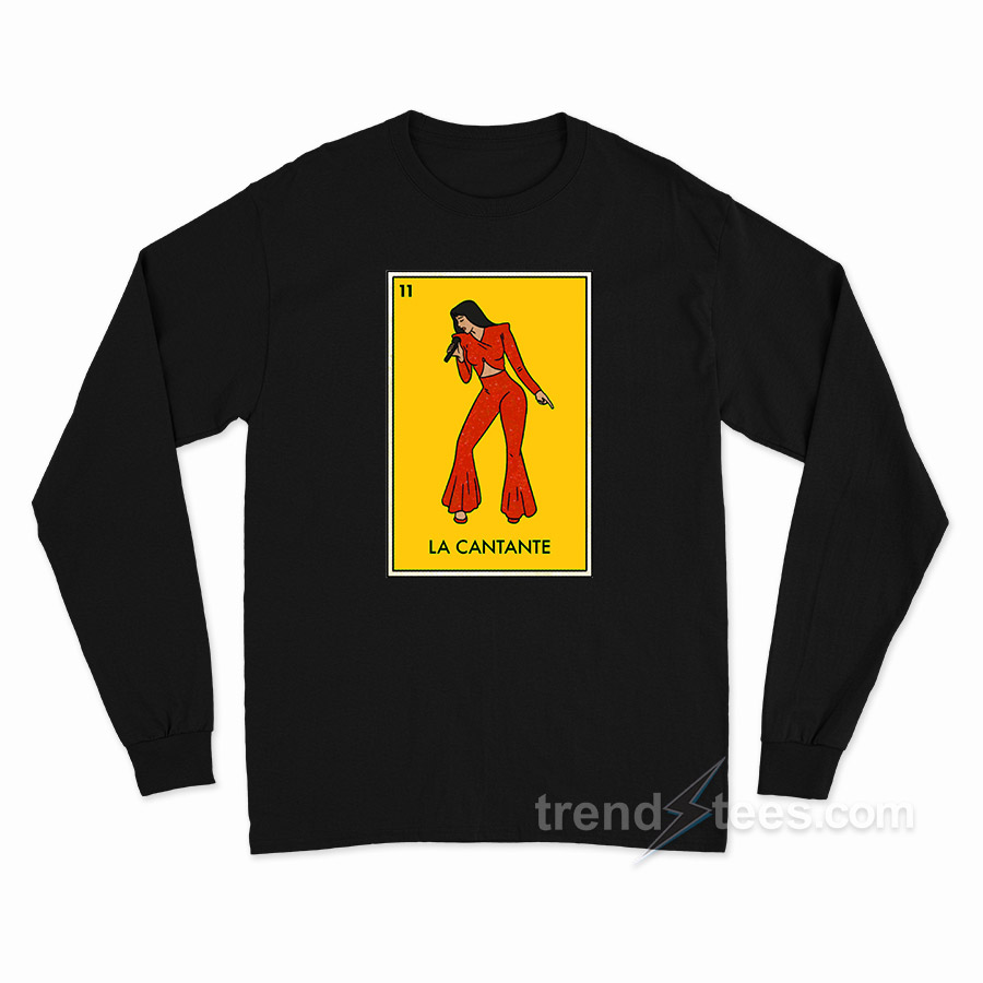Product Trendstees Everything is hand printing by our team at our warehouse using Eco-friendly inks and suppliers. All designs La Cantante Loteri Card Long Sleeve Shirt The ink is pressed into the fabric permanently and healed at high temperatures. It makes the image will not fade, crack, or wipe. This long sleeve t-shirt can be the best gift for your loved one.