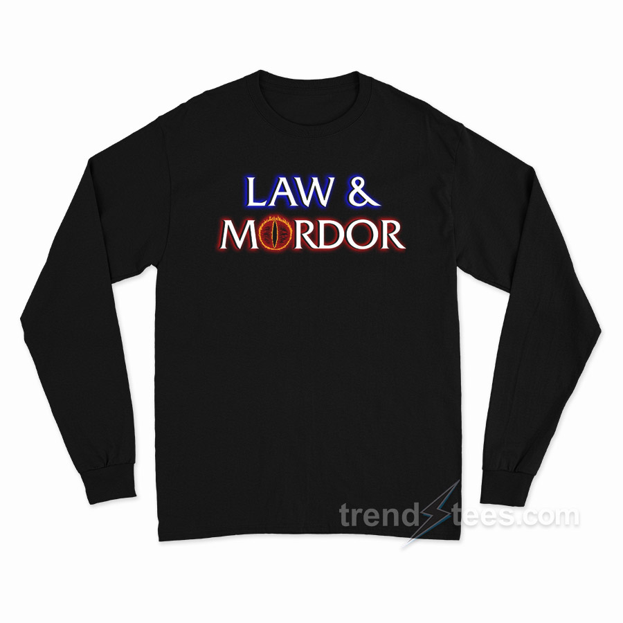 Product Trendstees Everything is hand printing by our team at our warehouse using Eco-friendly inks and suppliers. All designs Law And Mordor Long Sleeve Shirt The ink is pressed into the fabric permanently and healed at high temperatures. It makes the image will not fade, crack, or wipe. This long sleeve t-shirt can be the best gift for your loved one.