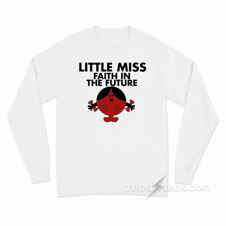 Product Trendstees Everything is hand printing by our team at our warehouse using Eco-friendly inks and suppliers. All designs Little Miss Faith In The Future Long Sleeve Shirt The ink is pressed into the fabric permanently and healed at high temperatures. It makes the image will not fade, crack, or wipe. This long sleeve t-shirt can be the best gift for your loved one.