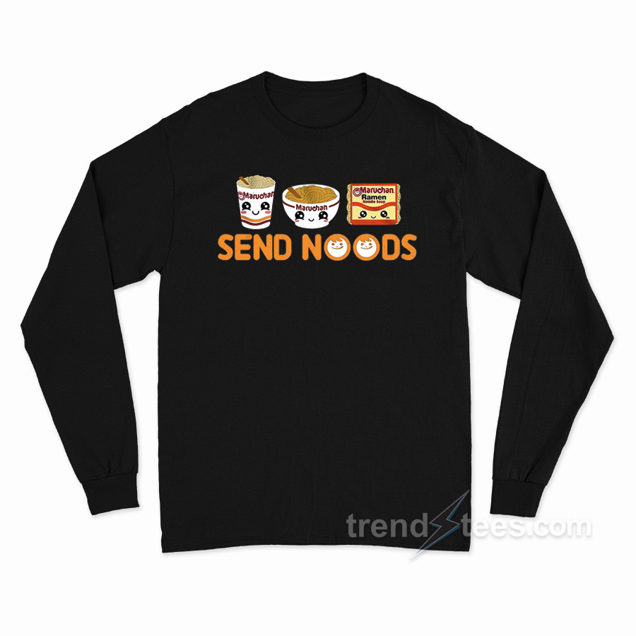Product Trendstees Everything is hand printing by our team at our warehouse using Eco-friendly inks and suppliers. All designs Maruchan Send Noods Long Sleeve Shirt The ink is pressed into the fabric permanently and healed at high temperatures. It makes the image will not fade, crack, or wipe. This long sleeve t-shirt can be the best gift for your loved one.
