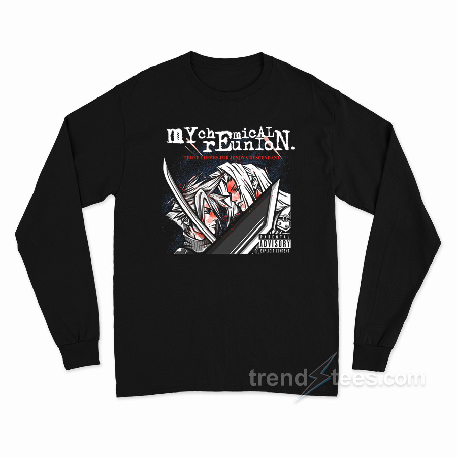 Product Trendstees Everything is hand printing by our team at our warehouse using Eco-friendly inks and suppliers. All designs My Chemical Reunion Three Cheers For Jenova Descendant Long Sleeve Shirt The ink is pressed into the fabric permanently and healed at high temperatures. It makes the image will not fade, crack, or wipe. This long sleeve t-shirt can be the best gift for your loved one.