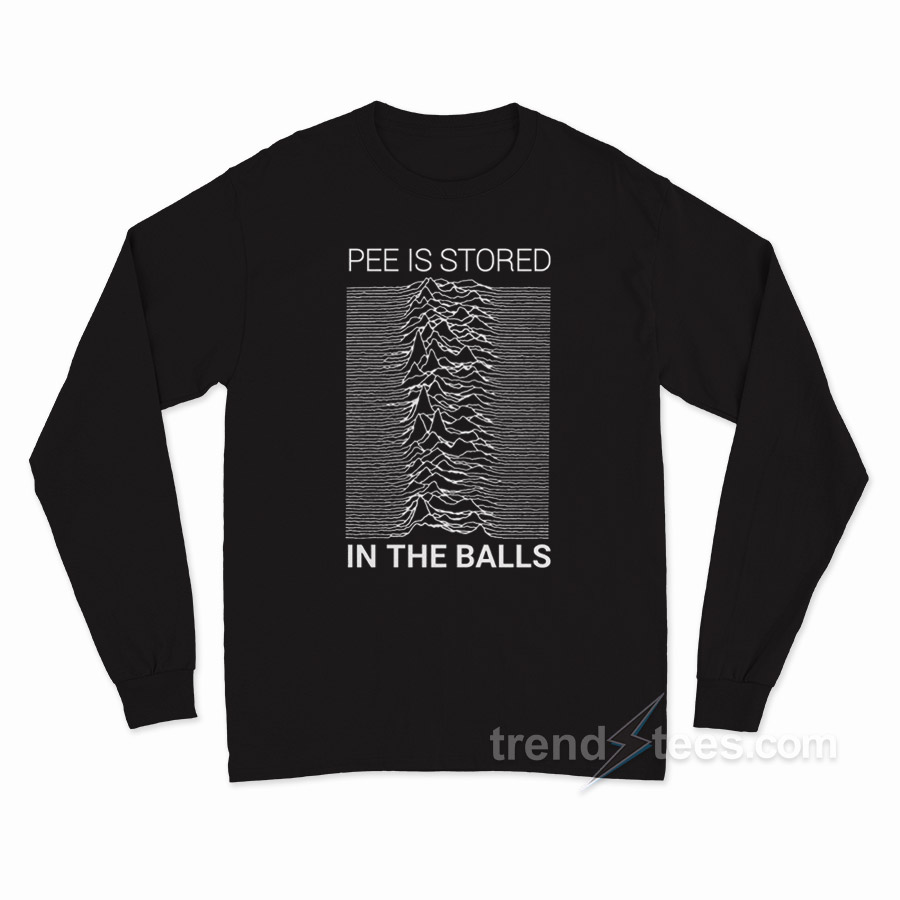 Product Trendstees Everything is hand printing by our team at our warehouse using Eco-friendly inks and suppliers. All designs Pee Is Stored In The Balls Joy Division Long Sleeve Shirt The ink is pressed into the fabric permanently and healed at high temperatures. It makes the image will not fade, crack, or wipe. This long sleeve t-shirt can be the best gift for your loved one.