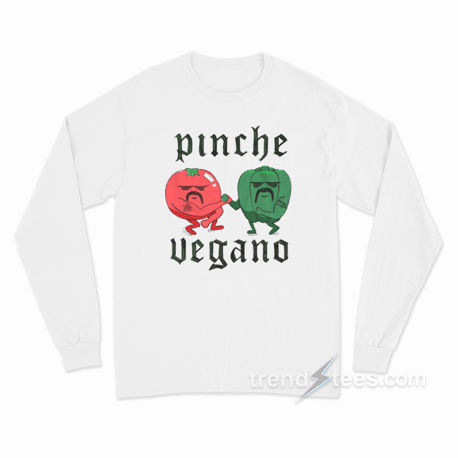 Product Trendstees Everything is hand printing by our team at our warehouse using Eco-friendly inks and suppliers. All designs Pinche Vegano – Cholo Veggies Long Sleeve Shirt The ink is pressed into the fabric permanently and healed at high temperatures. It makes the image will not fade, crack, or wipe. This long sleeve t-shirt can be the best gift for your loved one.