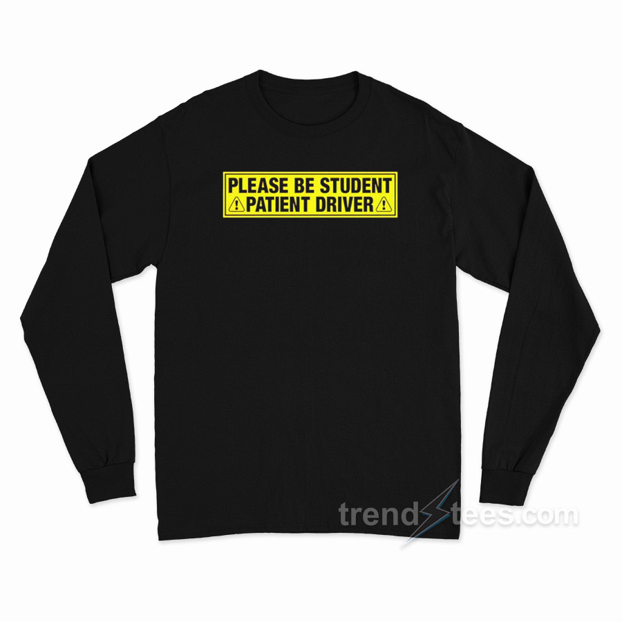 Product Trendstees Everything is hand printing by our team at our warehouse using Eco-friendly inks and suppliers. All designs Please Be Student Patient Driver Long Sleeve Shirt The ink is pressed into the fabric permanently and healed at high temperatures. It makes the image will not fade, crack, or wipe. This long sleeve t-shirt can be the best gift for your loved one.