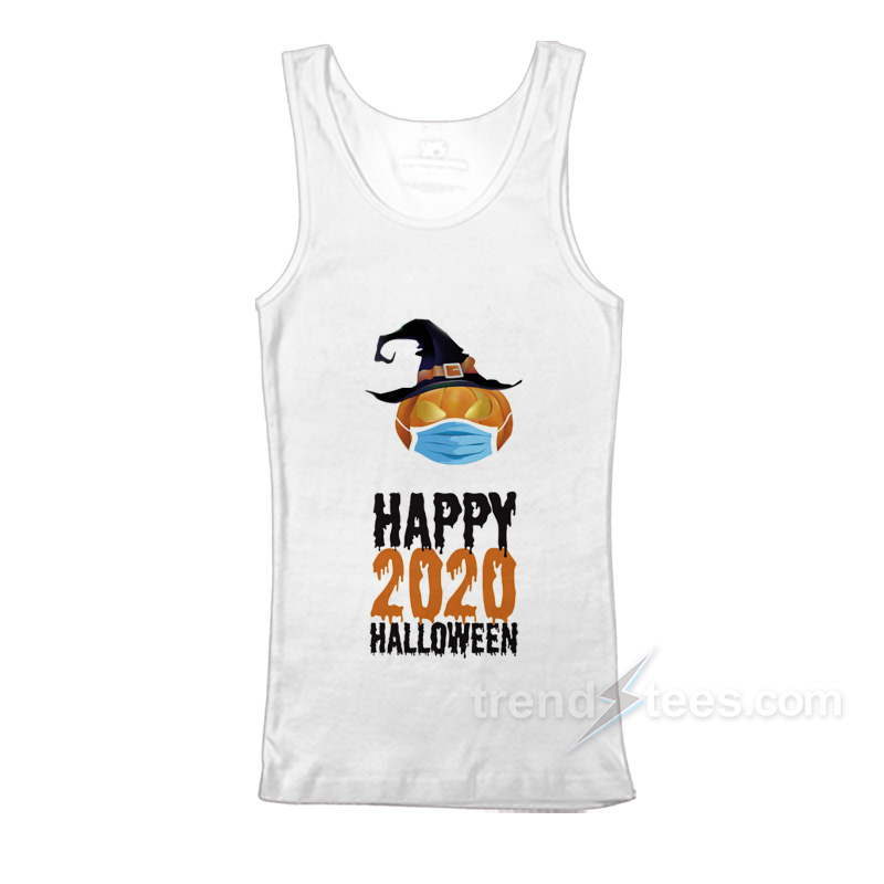 Pumpkin Wearing Face Mask Happy 2020 Halloween Tank Top :