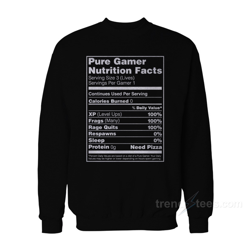 Product Trends tees Everything is hand printing by me at my house using Eco-friendly inks and supplier. All designs Pure Gamer Nutrition Sweatshirt For Women’s or Men’s are screen printing by hand and are high-quality prints. The ink is pressed into the fabric permanently and healed at high temperatures so the image will not fade, crack, or wipe from Unisex’s coated, sweatshirt, very soft, warm and comfortable screen is perfect for you