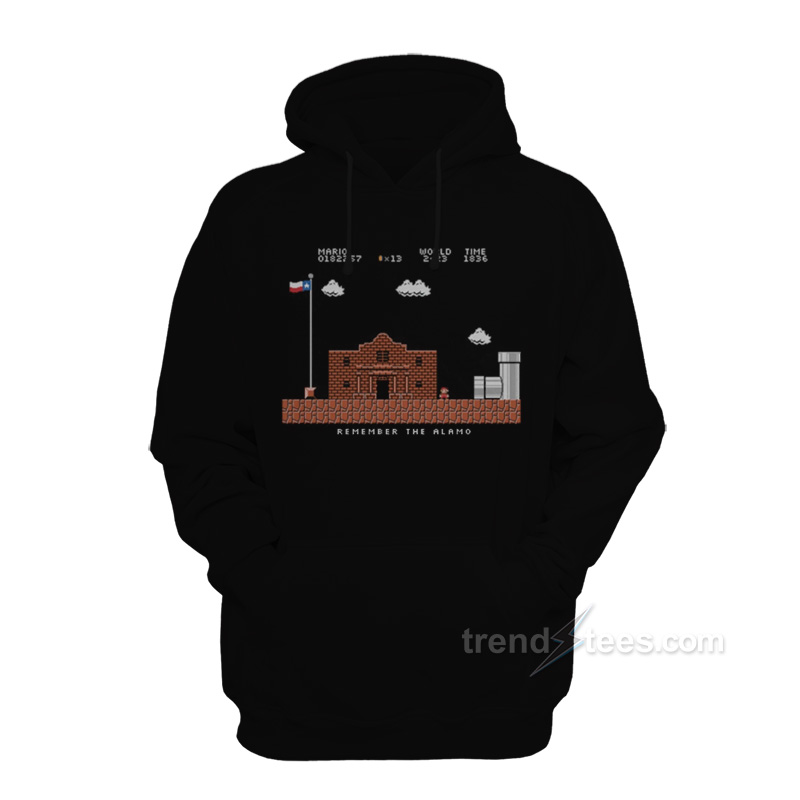 Welcome to Our Hoodies Categories, we produce Remember the Alamo Mario Hoodie For Women’s Or Men’s The design is printed locally with eco-friendly water-based inks using a digital printing method that guarantees a long-lasting and durable print