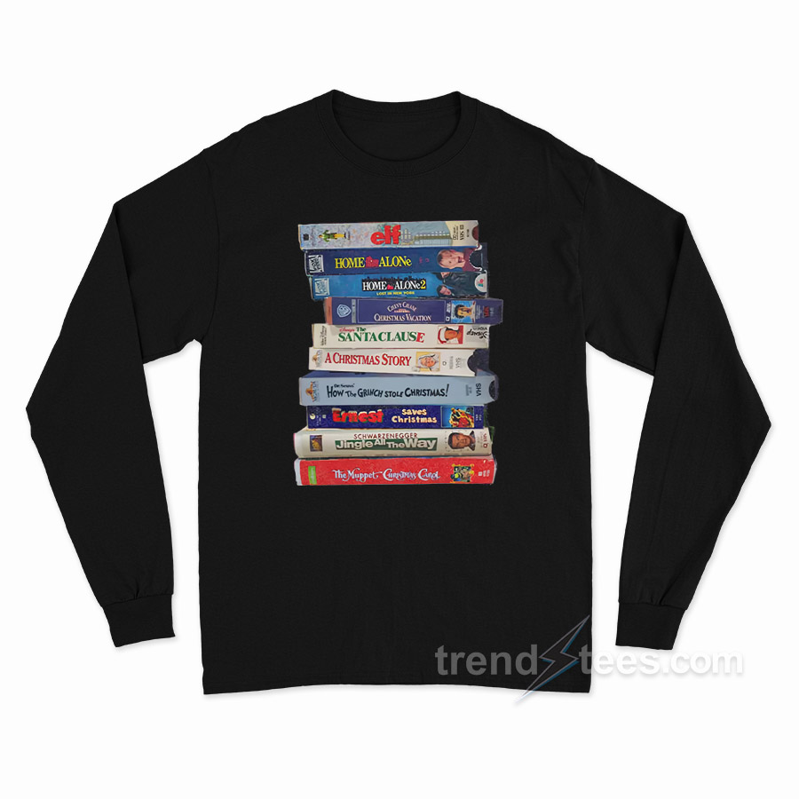 Here we go Trendy Clothing Stores! Find the perfect and also most suitable style custom t-shirt for your daily fashion at Trendstees All designs Retro VHS Xmas Tapes Long Sleeve Shirt The ink is pressed into the fabric permanently and healed at high temperatures. It makes the image will not fade, crack, or wipe. This long sleeve t-shirt can be the best gift for your loved one.