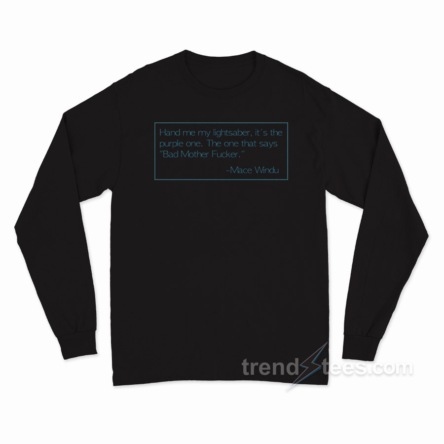 Product Trendstees Everything is hand printing by our team at our warehouse using Eco-friendly inks and suppliers. All designs Samuel Jackson Mace Windu : Bad Mother Fucker Long Sleeve Shirt The ink is pressed into the fabric permanently and healed at high temperatures. It makes the image will not fade, crack, or wipe. This long sleeve t-shirt can be the best gift for your loved one.