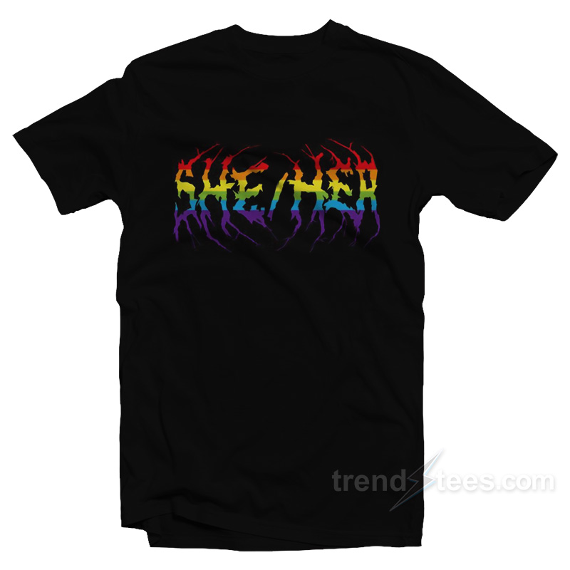 She Her Rainbow Metal T-Shirt For Sale Size S, M, L, XL, 2XL, 3XL