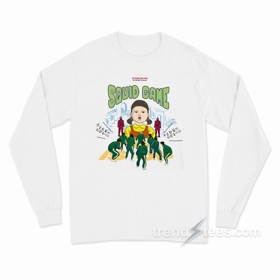 Product Trendstees Everything is hand printing by our team at our warehouse using Eco-friendly inks and suppliers. All designs Squid Game Movie Long Sleeve Shirt The ink is pressed into the fabric permanently and healed at high temperatures. It makes the image will not fade, crack, or wipe. This long sleeve t-shirt can be the best gift for your loved one.