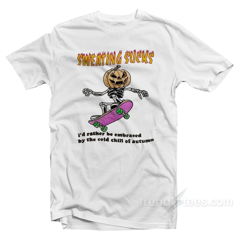 Sweating Sucks I’d Rather Be Embraced by The Cold Chill of Autumn T-Shirt For Sale Size S, M, L, XL, 2XL, 3XL