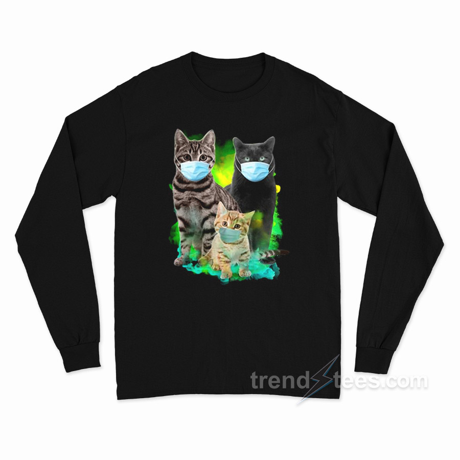 Product Trendstees Everything is hand printing by our team at our warehouse using Eco-friendly inks and suppliers. All designs Three Cats Wear Face Mask Long Sleeve Shirt The ink is pressed into the fabric permanently and healed at high temperatures. It makes the image will not fade, crack, or wipe. This long sleeve t-shirt can be the best gift for your loved one.