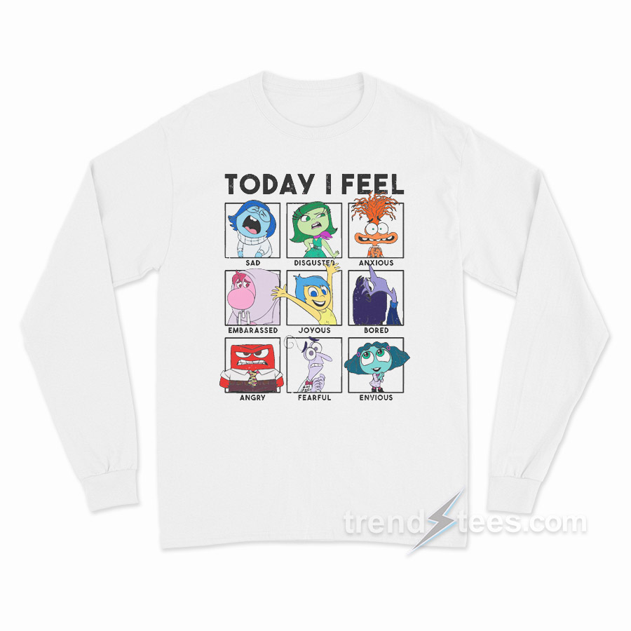 Product Trendstees Everything is hand printing by our team at our warehouse using Eco-friendly inks and suppliers. All designs Today I Feel Inside Out Long Sleeve Shirt The ink is pressed into the fabric permanently and healed at high temperatures. It makes the image will not fade, crack, or wipe. This long sleeve t-shirt can be the best gift for your loved one.
