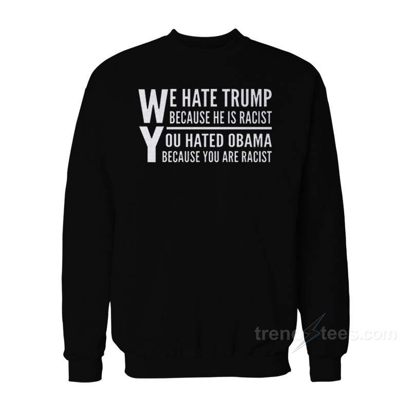 We Hate Trump Because He Is Racist You Hate Obama Because You Are Racist Sweatshirt For Women’s or Men’s