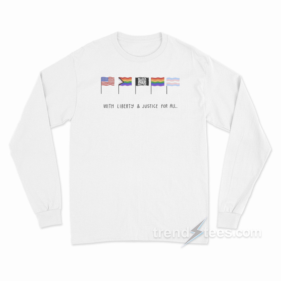 With Liberty And Justice For All Flag Long Sleeve Shirt For Women’s or Men’s